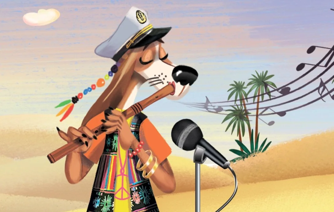My Cousin Flippy is a quirky Afghan hound who loves to play the flute as the Captain of the freshly painted S.S Macaroon sailboat! Along his travels, he will meet some of the newest members of his musical band while he mails his cousin postcards of his journey!